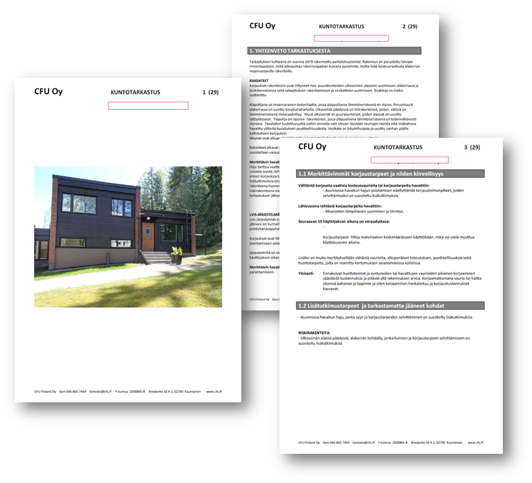 Kuntotarkastuksesta tehdään kirjallinen raportti.